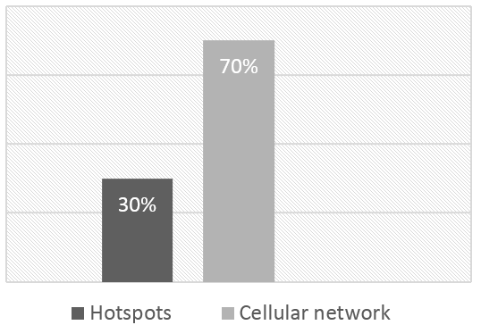 In addition, participants were asked to indicate the mode of connectivity they use to access the Internet. Again, this item provided respondents the flexibility to indicate all that is applicable to them. Therefore, the results include those who have multiple mode of internet access; hence, the percentages do not correlate with the total number of respondents. Figure 2 shows that 70% of them connect via mobile cellular network, 30% uses hotspots. Cellular network and hotspot both uses wireless network technologies. However, cellular network covers a wide geographical area whereas hotspot connectivity is limited to small Wireless Local Area Network (WLAN). Cellular network allows smartphone and other dial-up devices, such as pocket WI-FI to connect to the internet anywhere, on condition that there is network coverage. While majority (70%) of respondents can access the internet often, a key requirement for online learning, there is 30% of students who have limited internet connectivity. Therefore, when developing content for online learning, the designer needs to ensure that the content is downloadable for offline use in order to cater for students with limited access to the Internet.