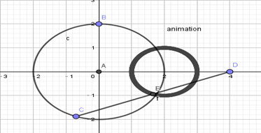 The software of GeoGebra is mainly used in the following aspects. (1) Forming the geometric concept. When the concept is generated, teachers can use the software to display the intuitive background of it, visualize the abstract concept, use the rich examples to make the concept get the "prototype" support, form the "model intuitive" of the concept, let the students experience the original process of its formation and understand the concept profoundly. (2) Revealing the connections and differences between different knowledge. Since the algebraic and drawing areas of the software can realize the function of combining and transforming numbers and forms (Zhang, 2018) students can have a deeper understanding of geometric knowledge by means of algebraic knowledge. (3) Solving geometric problems. When solving geometric problems, teachers can use the software of GeoGebra to display the characteristics of the questions in a simple and quick way, and deepen the students' understanding of the meaning of the questions. For example, we can explore the following question. What is the midpoint motion trajectory of a certain point(4,0) outside the circle