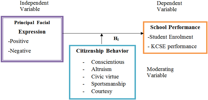 H1: Citizenship Behavior moderates the relationship between Principal’s Facial Expression and Performance of Secondary Schools in Nairobi City County.