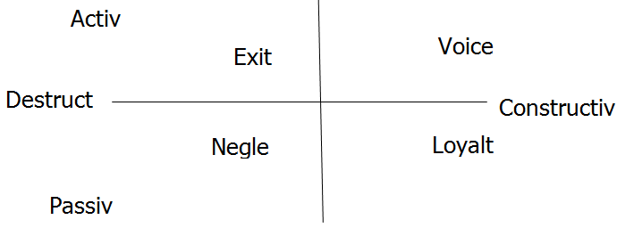 The exit- voice- loyalty-neglect-framework according to Liu et al. (2010) was made to explain the effect of job dissatisfaction to the organisation or health facility Figure 1. The model has four responses, which differ along two dimensions; constructive or destructive and active or passive.