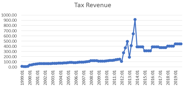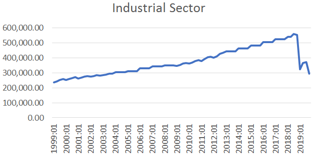 The following is a description of the conditions of the variables studied, namely the industrial sector GDP, BI Rate, government consumption, tax revenues and the consumer price index during the study period, 1999-2019.