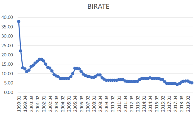 Figure-3. The Growth of BI Interest Rate in the Periode 1999-2019.