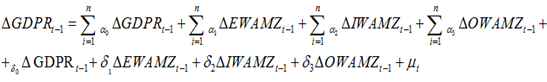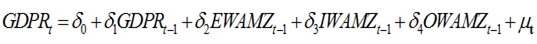 | Cointeq = GDPR - (-0.3819*EWAMZ -4.5845*IWAMZ + 11.2959*OWAMZ + 1.0303 | ||||