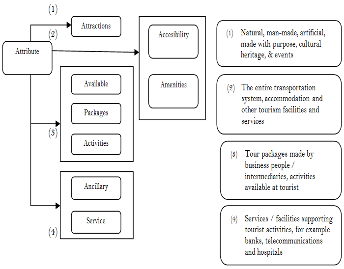 Building tourism competitiveness of an area must look at the tourism component that will increase the selling value or attractiveness of the tourism potential based on the classification of tourism businesses in the Classification of Indonesian Business Fields (CIBF). While the scheme can be seen in the following picture: