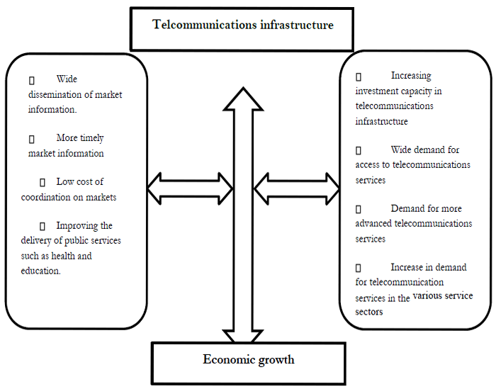 ) empirically examined the relationship between telecommunications infrastructure investment, gross fixed investment and economic growth for a sample of transition countries in central and southern Africa. Their result shows a strong relationship between the two variables without being able to establish a causal relationship.