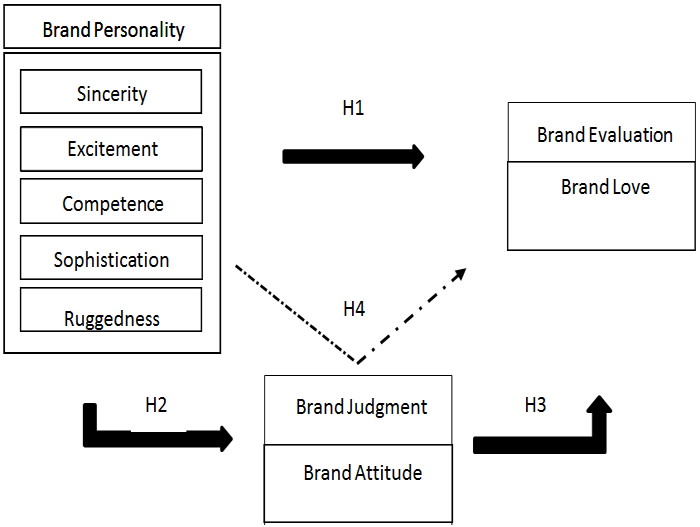 H1a – Sincerity dimension has a positive influence on brand love H1b - Excitement dimension is effective on brand love.
