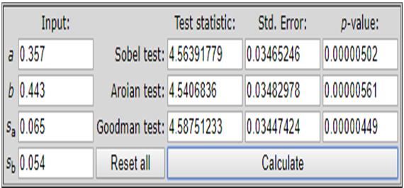Based on the Table 4 and Table 5, the following variables were calculated to determine the mediation effect.