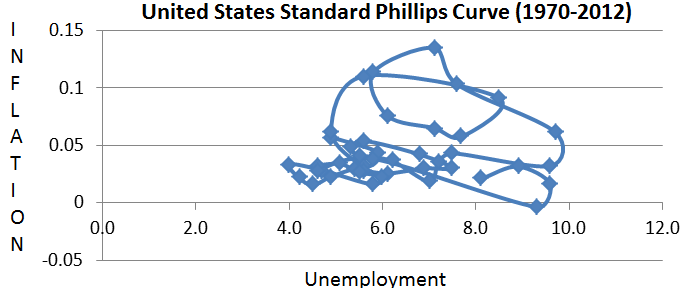 The Phillips Curve, derived in 1958 by British economist A.W. Phillips, suggests that an economy has a trade-off between inflation and unemployment. More poignantly, it depends on consumerism generating economic activity, creating numerous jobs, but leading to inflation, or vice-versa. Originally, the idea of inflation applied to wages, but was later adapted to prices. The Phillips Curve held true in the U.S. in the 1950s-1960s, but then began shifting outwards.