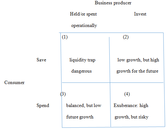 Furthermore, a new idea, proposed by Barry (2015) which has come to be known as “pump theory,” suggests that when savings rate of the public are high, the government could tax savings, and pump it into the economy through spending, yet cut taxes for spending when saving is low. Typically, consumption and government stimulus increase GDP the most, because they multiply, not savings. Disposable income would be taxed before being saved, or savings tapped into themselves, so that the revenue could be used for Keynesian projects, too risky for companies, to stimulate the economy. The government acts like a tire pump, allowing pressure (savings) to accumulate, taxing disposable income, and then pumping the air (savings) into the tire (the economy). Interest rates would adjust to the level of saving, such that they will be low when savings are high, due to outward supply, and high when savings are low, from inward supply. This policy would smooth saving versus spending, but would be highly political. The negative effect would be on long-term savings, but states could allow savings to accumulate until tax-rate (% spent) [sum (1+i)^y]/time value > tax-rate x sum, unless individuals consume their savings given lower taxes. The policy would be to use several pumps at a time.