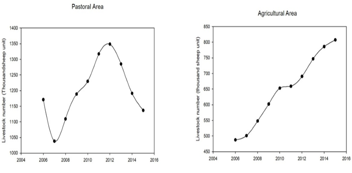 Figure-3. Annual Changes of Livestock Number in Pastoral and Agricultural Areas.
