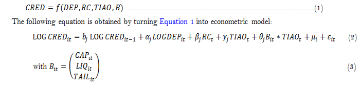 The first empirical study that verified the existence of the bank lending channel is based on aggregate data (Bernanke & Blinder, 1992). In the CEMAC zone, for example, some authors have focused their attention on the issue of the monetary policy transmission of BEAC's (Beguy, 2012; Saxegaard, 2006
