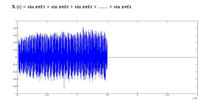The audio signal contains data points which represent amplitude of the signal in the time domain. The audio signal is a signal consisted of multiple sinusoidal waves of various frequencies. The signal is: