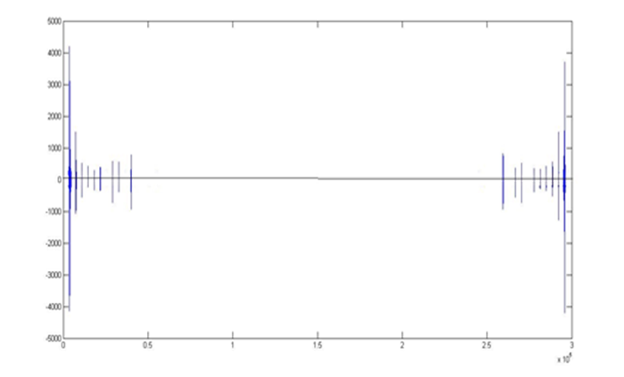 Figure-2.4. Audio signal in frequency domain after High pass filtering.