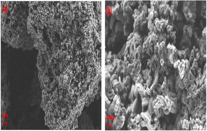 Scanning Electron Microscope (SEM) image of Promethium nanoparticles with 50000x zoom.