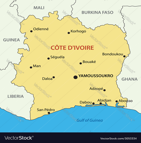 After taking office in 2011, the current President Alassane OUATTARA delivered a memorial speech presenting his vision for Côte d’Ivoire. He particularly emphasized the high time for the country to become an emergent country by 2020 with an emerging economy to guarantee social, political and economic sustainable prosperity. However, since then the reality is not reflecting the earlier ambition even if much has been done economically, other sectors especially education has not yet received adequate improvement while we are approaching 2020. The following picture Figure 1 is the map of Côte d’Ivoire.