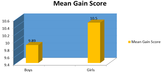 The above table results revealed that the differences in the gain scores between the girls and boys have been found to be not significant. Thus the framed hypothesis is accepted and the sex related differences are not there in terms of effectiveness of the counselling classes on the achievements in English. This finding has been shown in Figure 2.