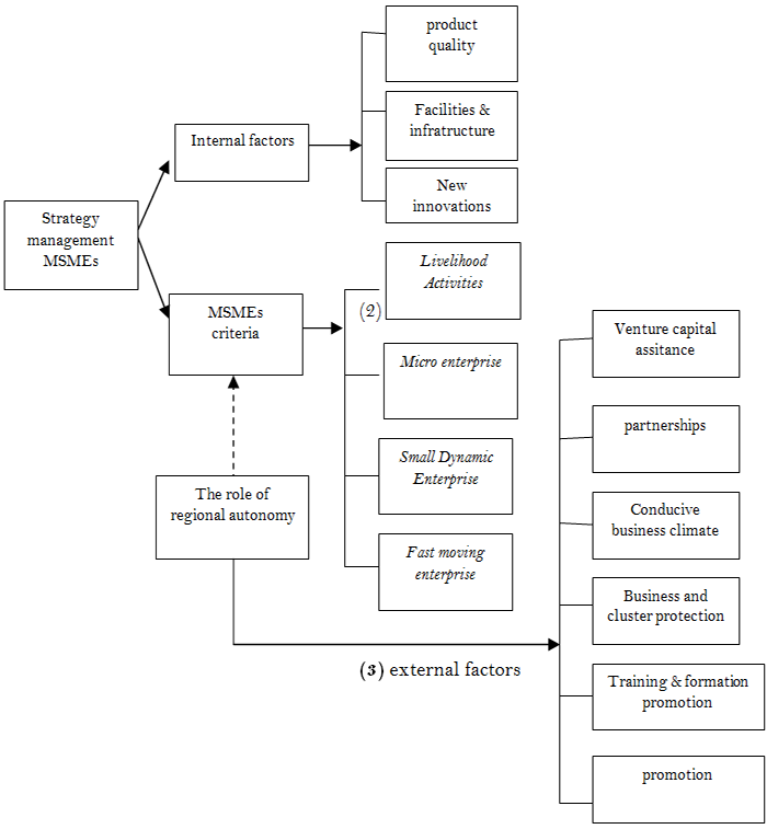 The method used to answer the background of the research problem is to use literature studies. Namely by searching for relevant written sources as reference material in the discussion of results; research (Robbins and Coulter, 1999). "Literature studies conducted are used to find the main concepts, developments over time, find a new way and future direction in the role of regional autonomy of Kediri towards the MSMEs sector. By utilizing library resources to obtain secondary data and various previous articles that are relevant to this research are mainly about the efforts that can be made both internally and externally to improve SMEs so that they are able to face market competition while increasing the APBD for public welfare. As a first step is to make research design (Zeid, 2002