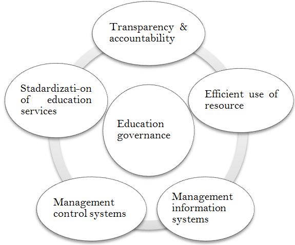 The dimensions of education governance are measured based on five criteria as in the following Figure 1: