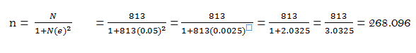 Sample size using Yaro Yamane Formula is expressed as thus: