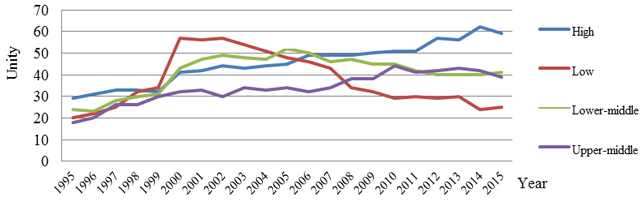Notes: L, LM, UM H represent the low, lower-middle, upper-middle, and high-income countries.