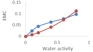 ] . The equilibrium moisture contents for cocoyam flours decreased with an increase in temperature [18
