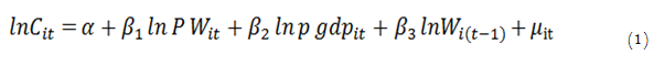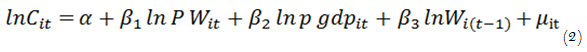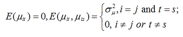 Among them, αi is independent of μit, for all i and t, Wi(t-1), PWit, and pgdpit. These three independent variables are also independent of αi and μit; αi is a random variable of individual influence, and E(αi)=0,Var(αi)=бa2ee’,e=(1,2,3,4,)’ is T-dimensional column vector, μit is a random error term, satisfying
