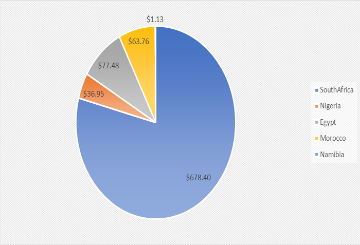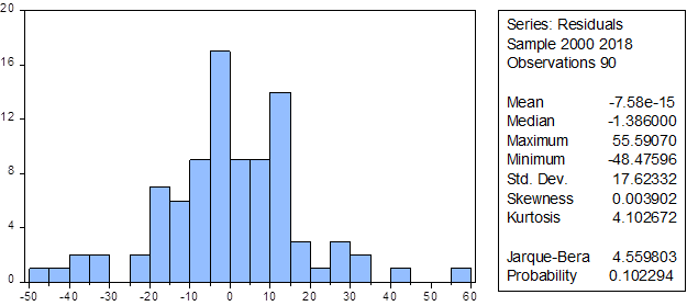 Based on the foregoing, this paper discusses effects of globalization on performance of top performing stock markets in Africa. According to the Price-Water House Cooper (2020) among the numerous stock markets in Africa, the Johannesburg Stock Exchange (South Africa), the Nigerian Stock Exchange (Nigeria), Egyptian Exchange (Egypt), Casablanca Stock Exchange (Morocco) and the Namibian Stock Exchange (Namibia) have been among the largest over a decade. This informs the selection of the aforementioned stock markets for this study covering the period of 2000-2018. Figure 1 above shows the Market capitalization (also known as market value) of the sampled countries. Figure 1 reveals that the Johannesburg Stock Exchange (South Africa) have been the largest stock market when compared to other stock markets with an average market value of $678.40 billion followed by Egyptian Exchange (Egypt), Casablanca Stock Exchange (Morocco) and the Nigerian Stock Exchange (Nigeria) with market values of $77.48 billion, $63.76 billion and $36.95 billion respectively. On the other hand, the Namibian Stock Exchange recorded a market value of $1.13 billion which is the least recorded among the selected African countries.