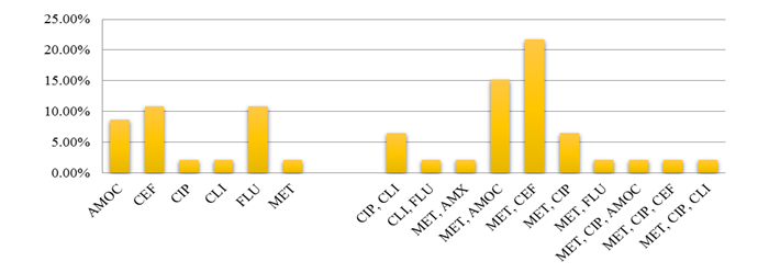 Abbreviations: CIP - Ciprofloxacin, CEF - Cefuroxime, CLI - Clindamycin, FLU - Flucloxacillin, AMX – Amoxicillin, AMOC – Amoxyclav, MET - Metronidazole.