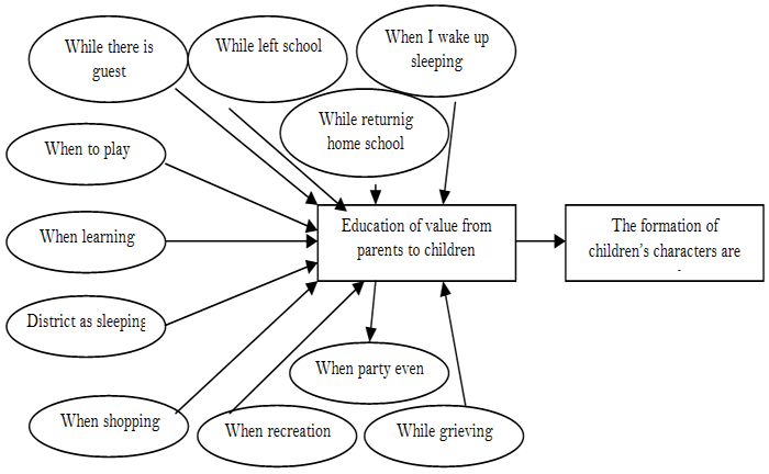 The value education strategy that parents instill in children, not only through words that are repeated continuously, however, parents in the value education process always provide a good example to children through actions. A good example, more can be felt, understood and imitated by children, than only through the sound that comes out of the mouth of a parent.