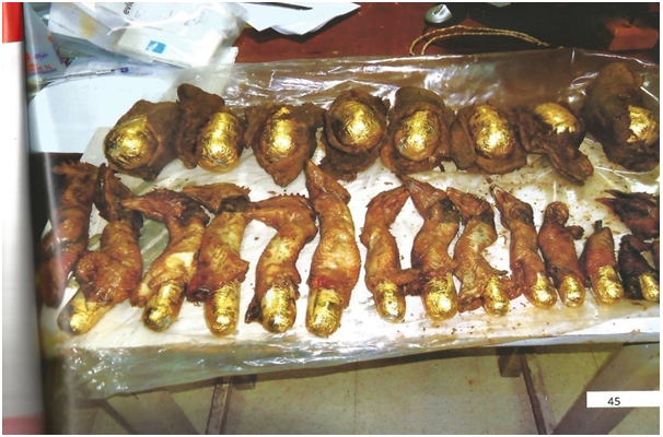 Palate 1 shows illict drugs concealed in a roasted chicken.