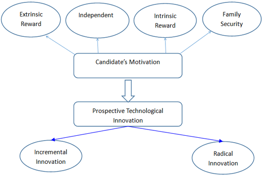 The candidate is precondition of start-up entrepreneur. The study will seek the candidates who want to start their new business. The goal of this research is to find out the relations between motivations of candidate and technological innovation. As a business will neither start up nor succeed without motivation, we can safely conclude that motivation is one of the most important factors in entrepreneurship fields. As a candidate, another factor is which kinds of technological innovation be carried out by them in future. Thus, there is wide significant to explore the relationship between two concepts. A post-positivist approach is adopted as the most appropriate way of uncovering this link in the research.