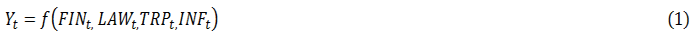 In the study, GDP per capita, trade openness, inflation, law and order and two financial development indicators (broad money (% of GDP) and domestic credit to private sector (% of GDP)) are used. The data are secondary in nature, and cover the period of 1984-2017. The time period is chosen based on the availability of data, especially the governance indicator (law and order). Specifically, economic performance is measured by GDP per capita. Given that some macroeconomic measures could potentially affect the growth of the economy, both trade openness and inflation are incorporated in the model as control variables. The role of these variables in economic development process has been previously justified by Frankel and Romer (1999); Lucas (2007