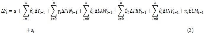 The preceding review has revealed that the international debate about the association between institutions and economic growth is tenable. However, evidence seems to pose a competing choice between the incorporation of the institutional measure (law and order) and the speed expansion of the debate in relation to finance-growth nexus in Nigeria. Hence, this influences the move to calibrate governance indicator into the model of finance-growth linkage in the study.