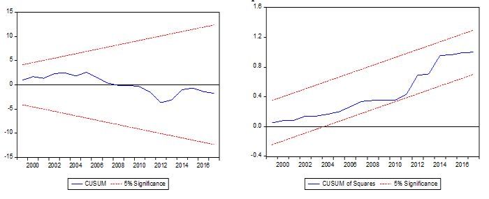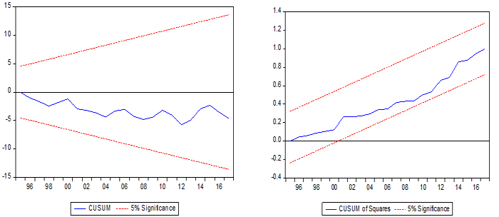 The empirical findings reveal why the financial system reforms and development in the financial sector do not reflect in the growth rate of Nigeria’s economy. No matter how well-intended, this points to the folly in the country’s governance and policy reforms. Although literature is occupied with documenting cases of positive and negative influence of financial sector development on economic performance, in the long run as well in the short run, the study establishes that financial development has no substantial impact on economic growth in Nigeria. Similarly, findings indicate that the quality of institutions in the country does not significantly affect the economy. Regarding the interaction term, evidence reveals that the joint effect of financial development and governance on the growth of the economy is adverse and insignificant. The implication of this is that pervasive weak institutions and ineffective financial systems could be harmful and detrimental to economic performance. Furthermore, the existence of insignificant effect of financial development and institutional measure on GDP per capita could suggest the restrained influence of the financial sector and poor political environment, coupled with the high level of political uncertainty, on the economy.