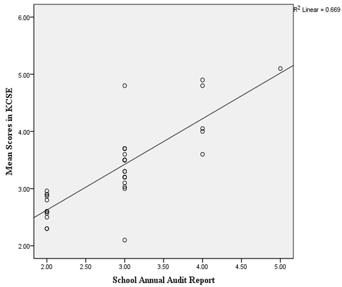 Regression analysis was done with the dependent variable being Mean KCSE performance in various schools sampled and school annual audit reports which was unique to different schools and the IGAs amount realized also considered to establish the relationship as indicated in the scatterplot in Figure 7 and regression model in Table 9.