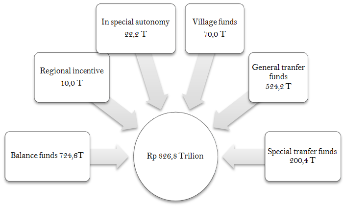 The central government in 2019 has transferred regional funds which is quite large, namely around 826.8 trillion rupiah. The aim is to improve quality and reduce disparities in basic public services between regions. The following data were obtained from the Ministry of Finance in 2019, in the Figure 2: