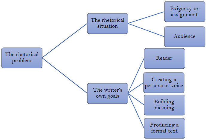 According to Flower and Hayes (1980) when writers write, they are faced with a rhetorical problem. This rhetorical problem stems from two main issues; (a) the rhetorical situation and (b) the writer’s own goals.