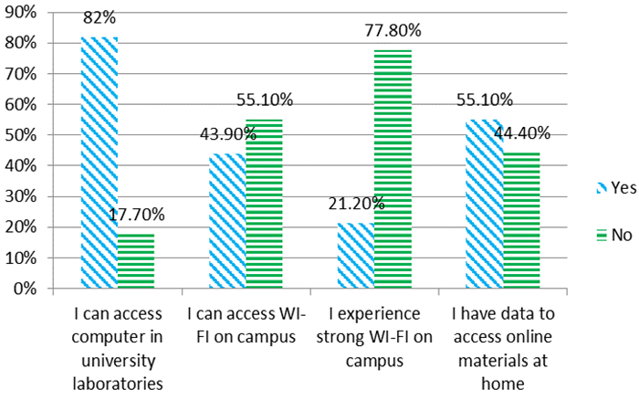 ). Effective use of LMS is only possible when staff and students have unlimited access to technological devices and internet access.