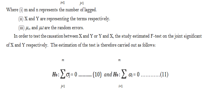 In order to obtain the expected distribution for the time series data, the study performed a descriptive statistic to understand the behavior of the mean, standard deviation, skewness, kurtosis and the Jarque-Bera (JB) test to determine the normality of the distribution. The study also estimated and perform the common constant effect, fixed effect and Granger Casualty test to test the study’s hypothesis.