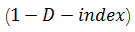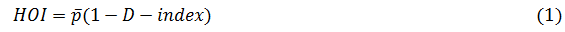 With (1-D) the equality factor. It is equal to one in the case where the access to the opportunity is independent of the circumstances. In this situation, the HOI is equal to the average coverage rate. The D represents the share of the total number of opportunities to be reallocated among types6 to ensure equality of opportunity. It is called the dissimilarity index. The latter can be calculated as follows: