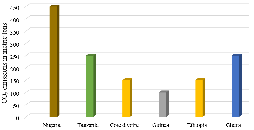 Figure 2. CO2 emissions in metric tons for selected SSA countries. |