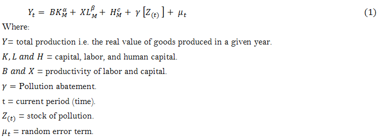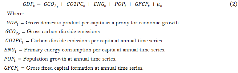 According to the hypothesis and as shown in Equation 1, pollution and output (i.e., economic growth) are related (CO2 emission).