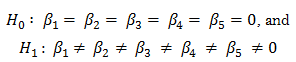 The bounds test is conducted by testing the null hypothesis (H0) against the alternative hypothesis (H1) using the following equations: