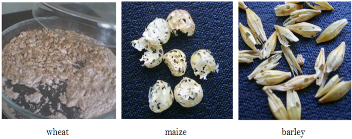 The type of severe damage to wheat, barley, maize, and the huge amount of dust released due to the nutrition and vital activity of the grain beetle is shown in Figure 2.