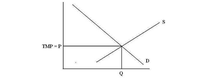 We know the traditional market price(TMP) is determined by the interaction of traditional supply(S) and traditional demand(D), which can be represented as follows: