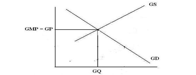 The price structure of the perfect green market(GM) is found at the point where green market demand(GD) clears green market supply(GS) as shown in Figure 2 below: