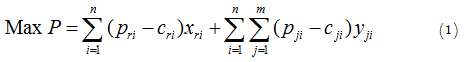 Given that annual profit of a coal operation is P, iis the number of its mines, j denotes the number of coal products, and there are n mines in the coal operation, m coal products. The xri refers raw coal production rate of the ith mine, yji the production of the jth coal products of the ith mine, pri is the raw coal price of the ith mine, cri is the raw coal production cost of the ith mine(i=1, 2, ..., n); pji is coal price of the jth coal products in the ith mine, cji is the production cost of the jth coal products of the ith mine ( j = 1, 2, ... , m). The objective function is to achieve the maximum profit of the operation, so the optimization equation of coal products can be set up as follows: