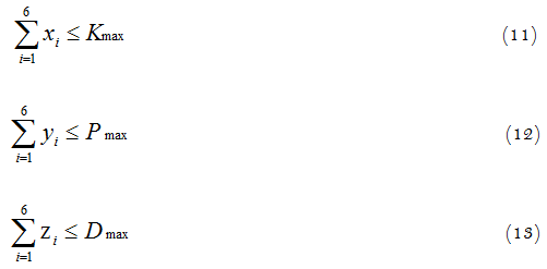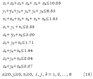 | xi > 0, yii >0, zii > 0, i = 1, 2, ..., 6 (16) |