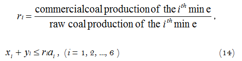 The maximum raw coal production rate of the ith mine is ai, recovery rate of the commercial coal in the ith mine is ri,