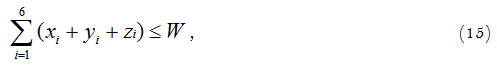 | Max F = 443.15x1 + 503.42x2 + 473.69x3 + 0.0x4 + 336.75x5 + 431.05x6 + + 304.40y1 + 315.71y2 + 292.38y3 + 266.02y5+ + 165.32z1+128.00z2 +111.07z3 + 337.98z4 + 195.29z5 + 141.23z6 (17) |